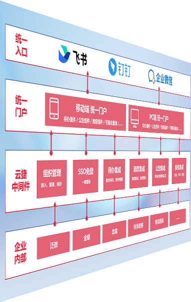 对协作平台提供支持服务,,支持企业应用与协作平台对接,,包含组织同步、、、、消息集成、、、待办集成等。。。。支持目前主流的协作平台:钉钉、、、企微和飞书。。。。